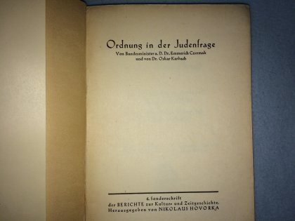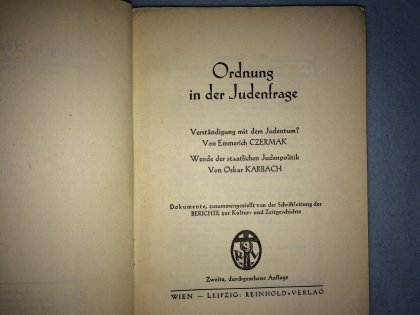 Ordnung in der Judenfrage. Verständigung mit dem Judentum? Wende der staatlichen Judenpolitik. Dokumente, zusammengestellt von der Schriftleitung der Berichte zur Kultur- und Zeitgeschichte